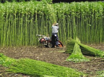 真っ直ぐ伸びる茎は、繊維として、縄、布、紙を作るために。